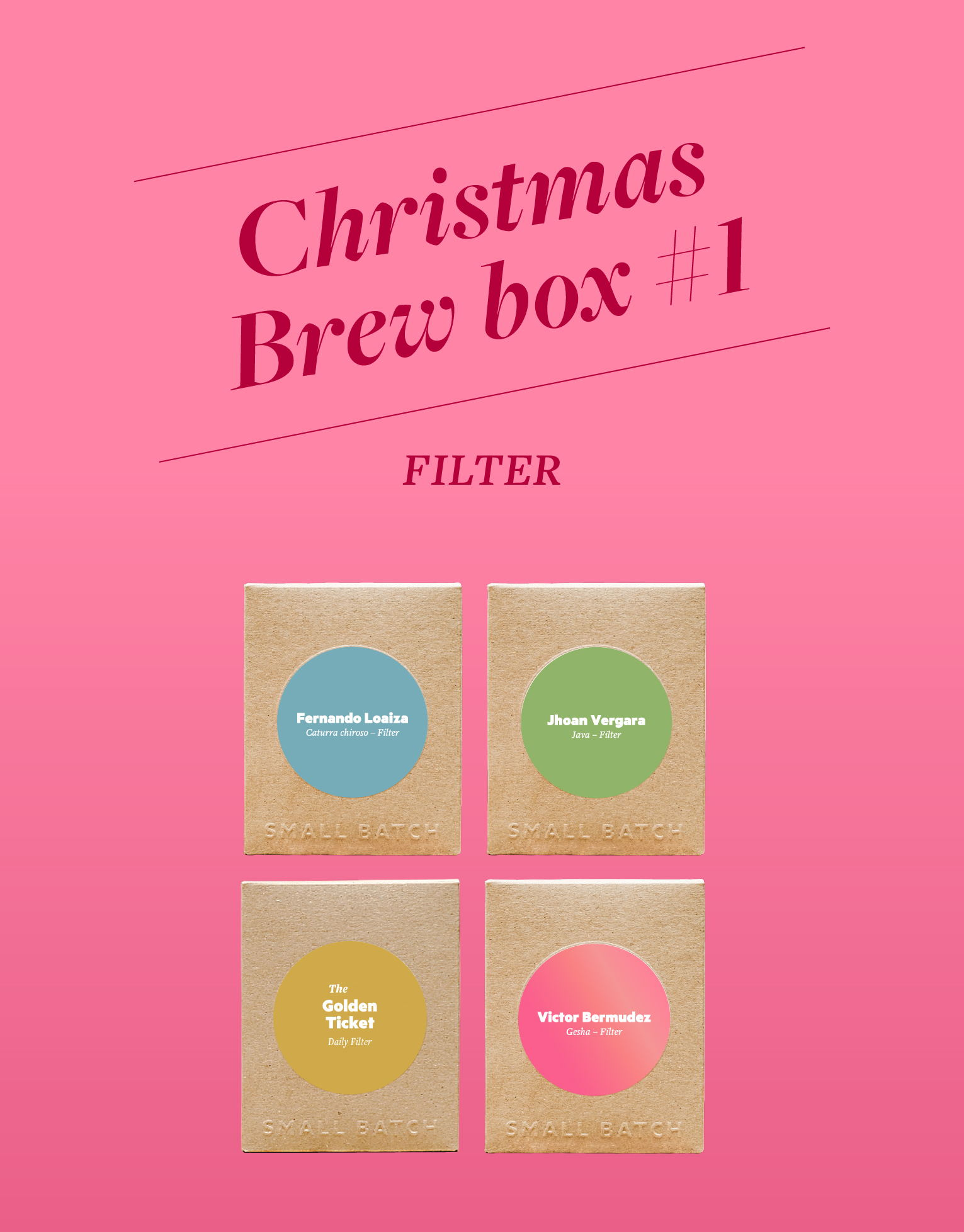 Filter (4 x 250g)– All Three different 250g bags of our Brews of Christmas Week #1 release single producer lots (our heavy hitters!) roasted for filter brewing and 250g of our daily filter blend, The Golden Ticket.